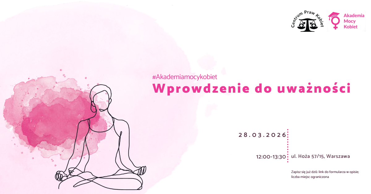 Centrum Praw Kobiet serdecznie zaprasza do udziału w cyklu spotkań Godzina uważności w ramach#AkademiaMocyKobiet. Uprzejmie informujemy, że z powodu trudnej sytuacji finansowej zmuszone byłyśmy wprowadzić płatność za warsztaty, w kwocie 40 zł za godzinę (120 zł za...