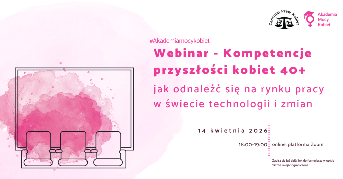 Centrum Praw Kobiet serdecznie zaprasza do udziału w webinarze Kompetencje przyszłości kobiet 40+ – jak odnaleźć się na rynku pracy w świecie technologii i zmian w ramach#AkademiaMocyKobiet.